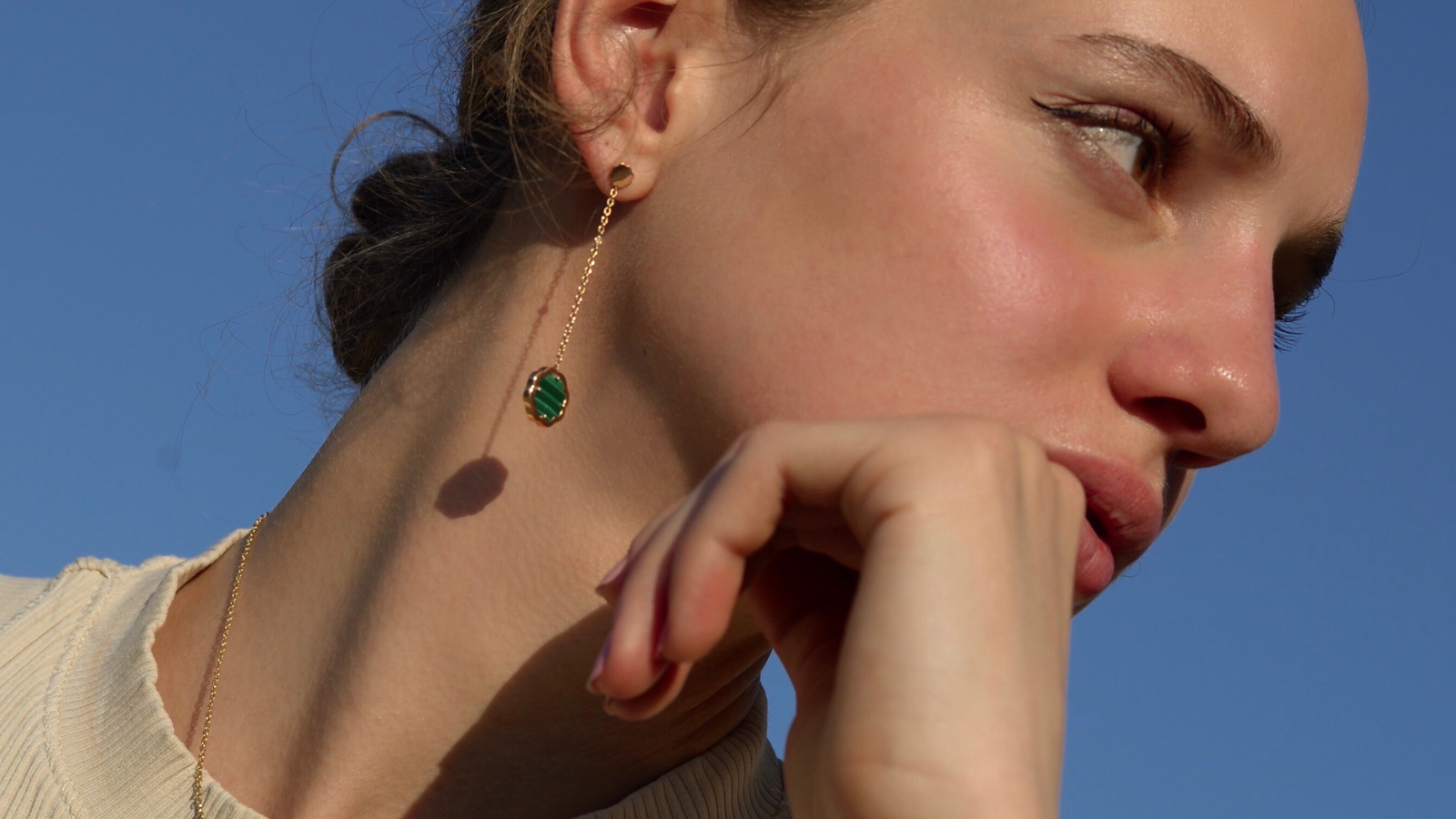 Malachite jewelry pieces from STEPHANIE KALCK can work beautifully with spring outfits, adding a touch of elegance and nature to your look.